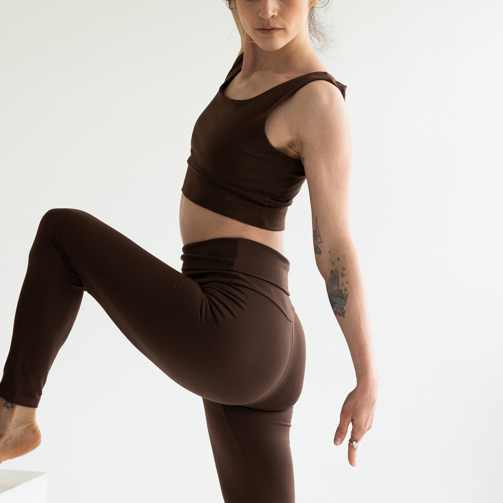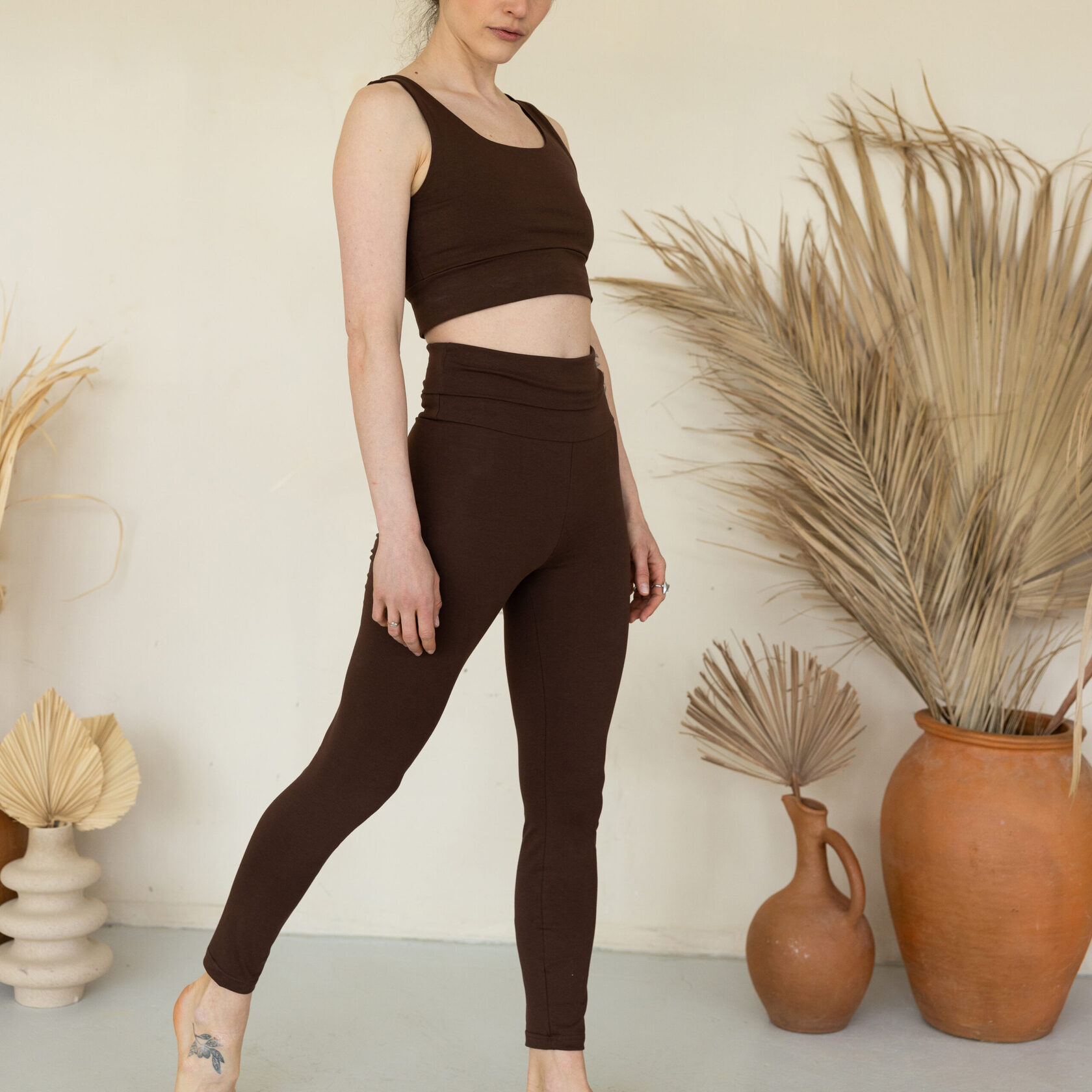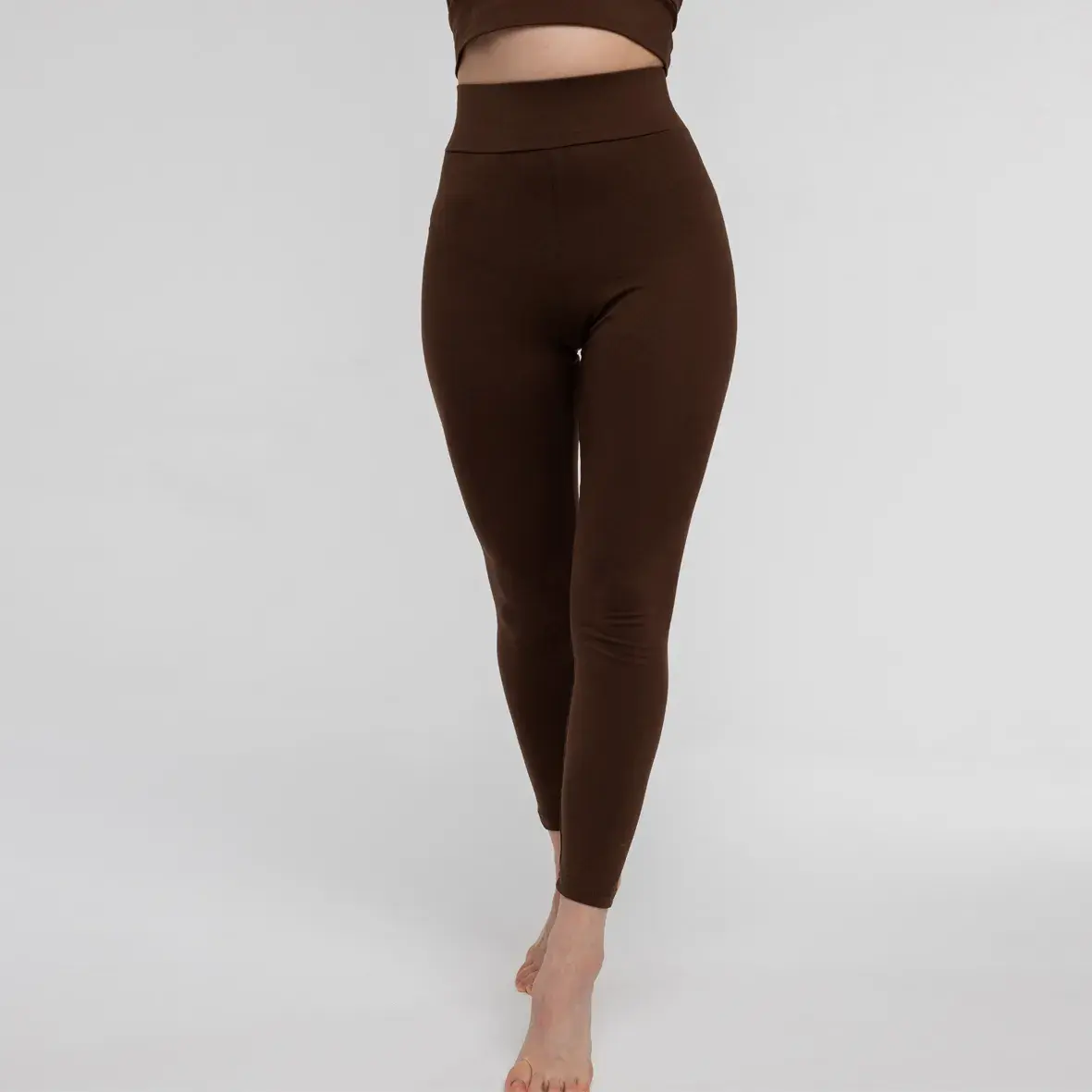 Женские леггинсы из хлопка с высокой посадкой коричневого цвета