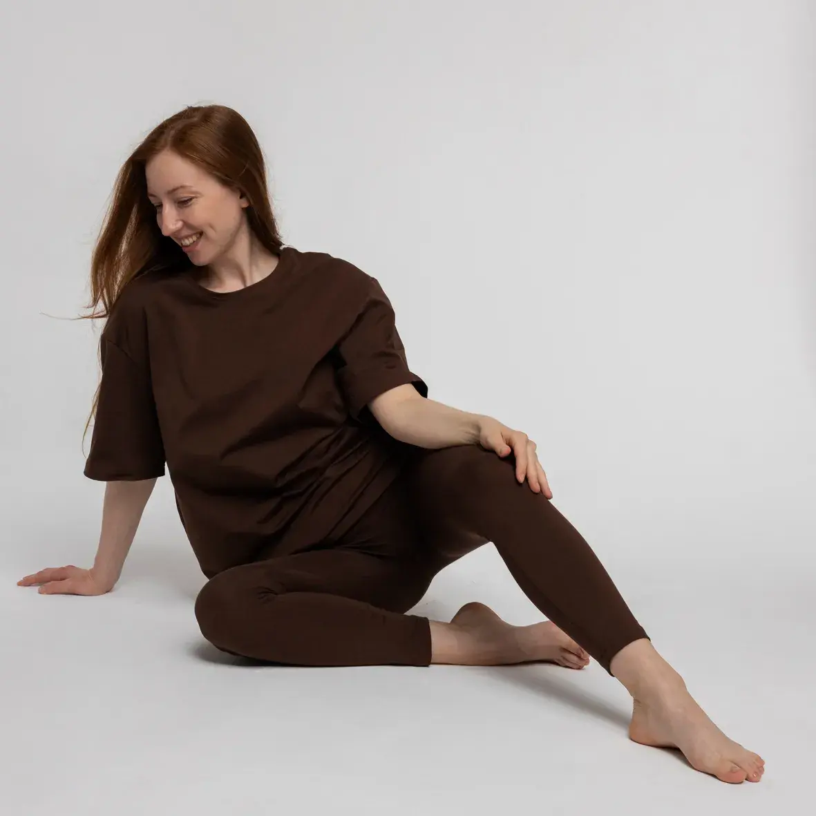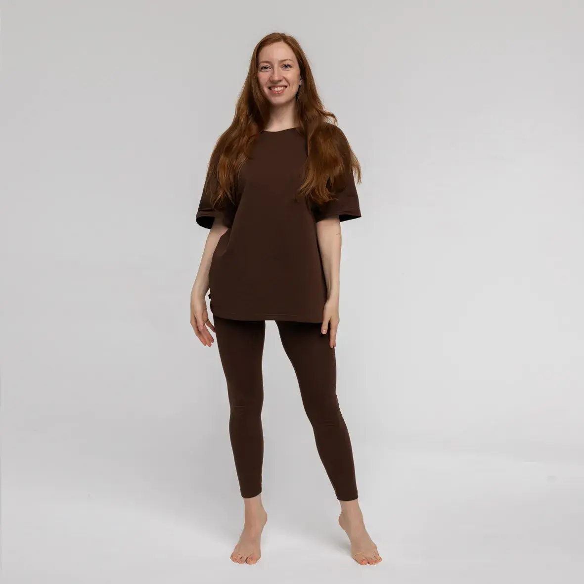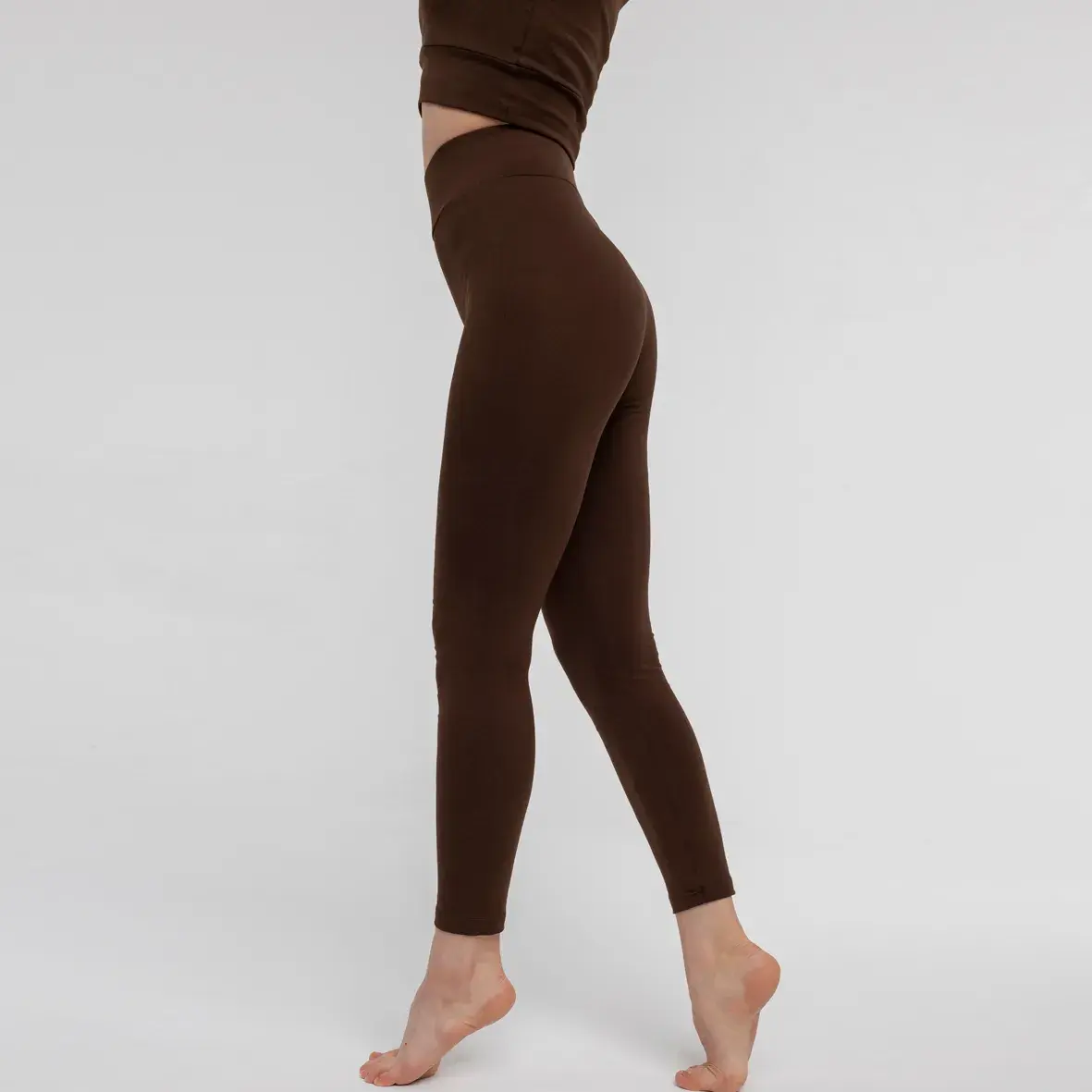 Женские леггинсы из хлопка с высокой посадкой коричневого цвета