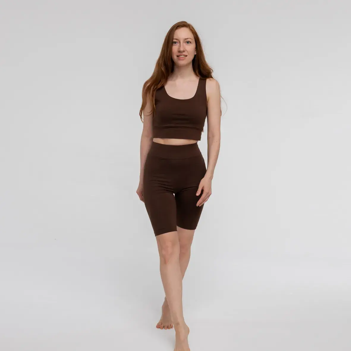 Женские велосипедки из хлопка коричневого цвета Облегающие велосипедки из мягкого эластичного хлопка с минимальным содержанием лайкры Материал плотный, классно смотрится также с лонгсливом или футболкой, худи Широкий фиксирующий пояс, обеспечивающий идеальную посадку Отсутствие бокового шва Комфорт на практиках или тренировках, дышащий хлопок, не стесняющий движений Прекрасный вариант не только для повседневной носки, но и для йоги, спорта